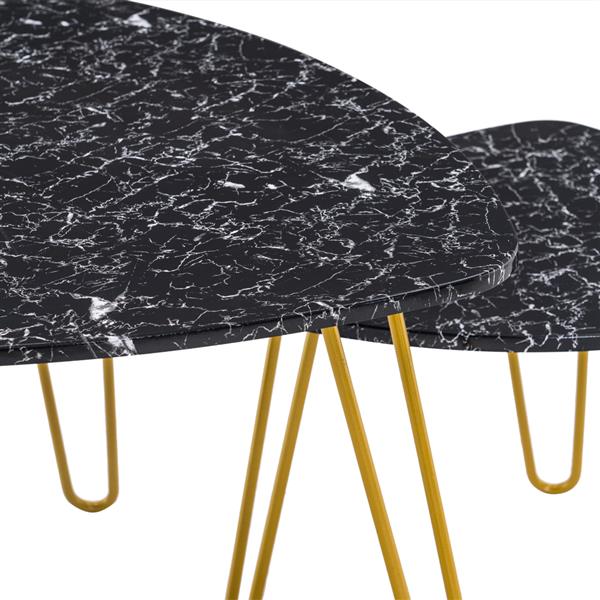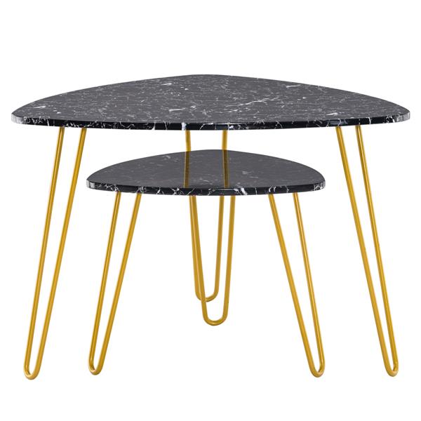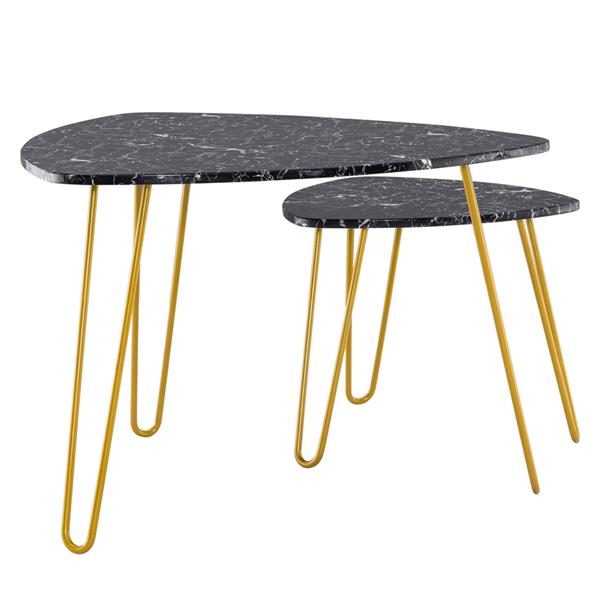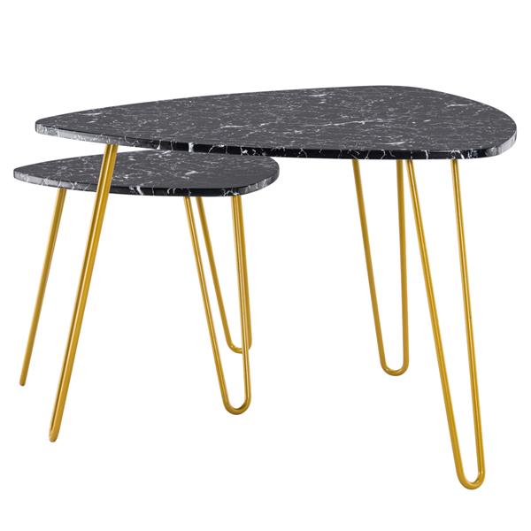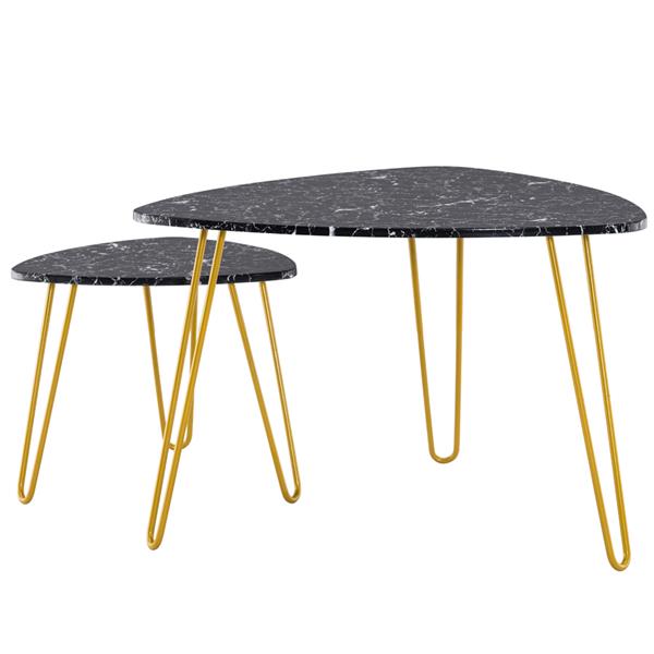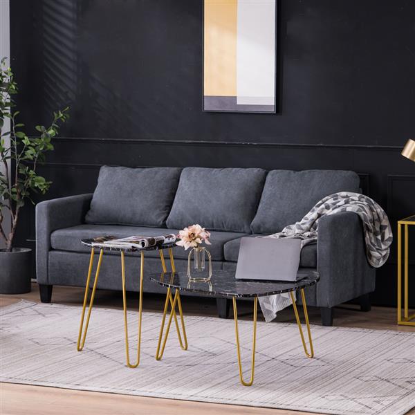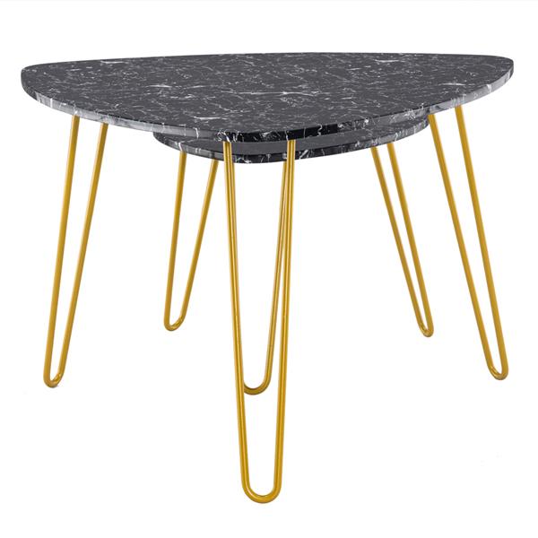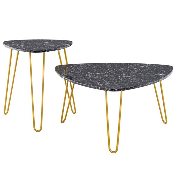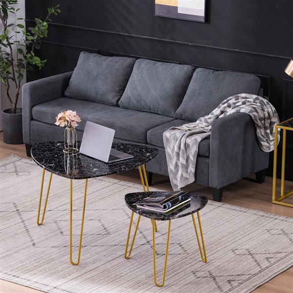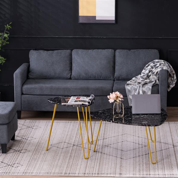 Here is our Marble Iron Feet Coffee Table Side 2 Sets. This modern coffee table is suitable for apartments, homes or offices. The design can well accommodate a variety of accessories or things, such as your laptop, magazines, books, remote control or other things. Table legs are sturdy and durable in use. The smooth surface makes it easier for you to clean. The stains on the table can be cleaned quickly, which reduces your worry. Plus it is easy to assemble. With a beautifully simplistic look, what are you waiting for? Don't hesitate to bring it home!