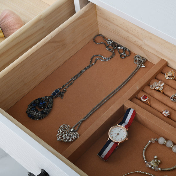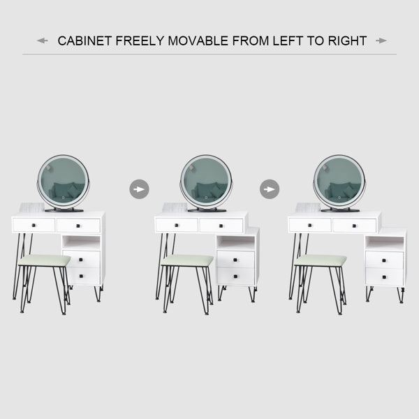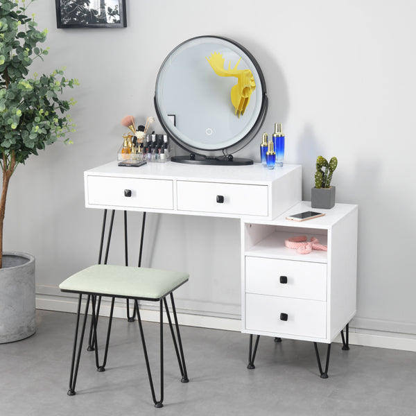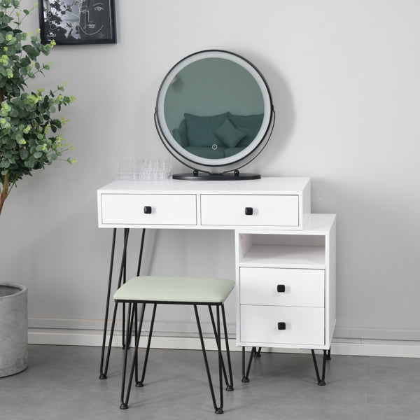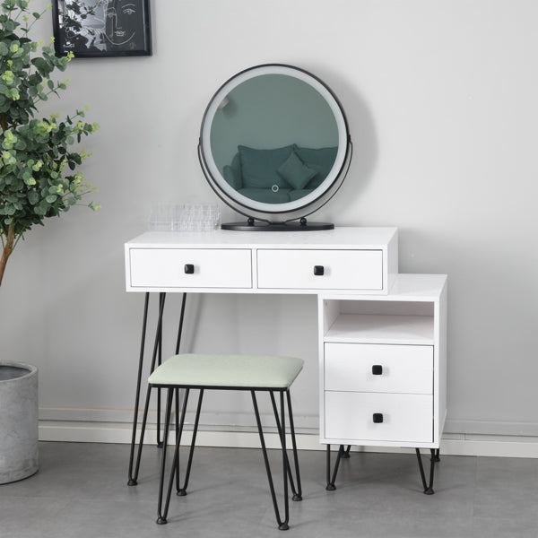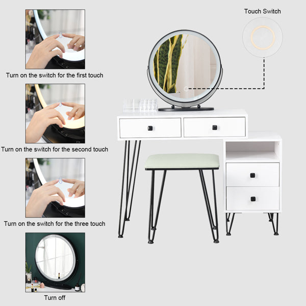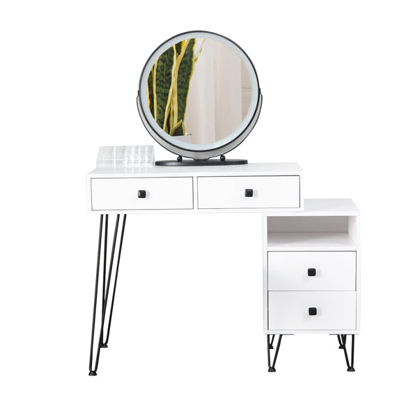 This is a very fashion, modern and simple dressing table. Large glass round mirror on the tabletop can show your beauty.Two drawers on the table with a acrylic lipstick holder can make a good classification for your cosmetics. When you are not using it, you can also remove it as a desk or other table. There is also a movable chest of drawers under the table. This dressing table can be placed in the living room, bedroom, or anywhere you want, which can provide the most beautiful furniture decoration for your home.