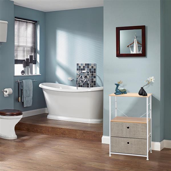 Give your household essentials a cozy landing spot with the 2-Drawer Dresser. This beautiful dresser chest features a tabletop surface and pull-out drawers to tuck away household clutter. The thoughtful design is great for small living spaces and works equally well near the bed or sofa. Organization enthusiasts will enjoy filling each drawer with clothing, linens, and knick-knicks from around the home. The lightweight frame makes this unit easy to transport and when not in use, simply fold the fabric drawers flat for storage. Use alone as a single unit or pair with any drawer configuration from the Furniture Collection.