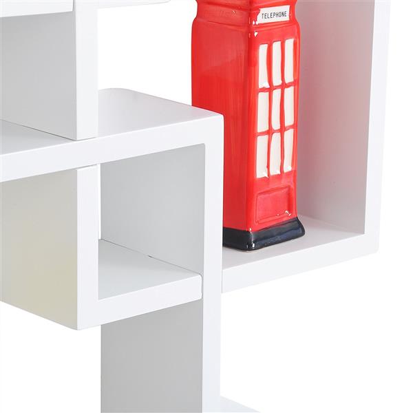Our White Intersecting Square Floating Wall Mounted Shelf Is Modern And Contemporary, Which Be A Great Additional To Any Home And Office. This Shelf Is Made Of 4 Different Squares That Are Attached Together To Form One Large Piece.And You Can Put Many Things On It, Such As Candles, Plants, Pictures, Books,Vases, Collectibles, And Much More. Moreover, It Would Be A Great Decoration To Your Living Space. Once Assembled, It Can Be Mounted On A Wall And Knick-Knacks Can Be Added On It. Do Not Hesitate To Buy One!