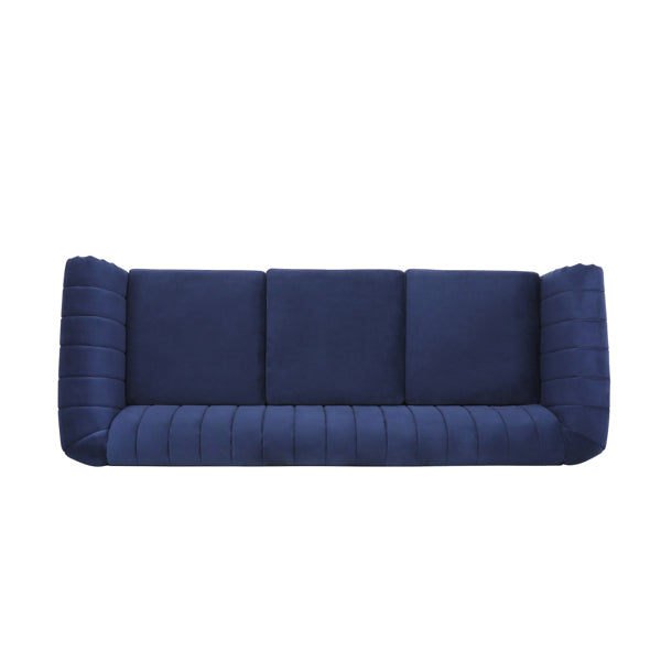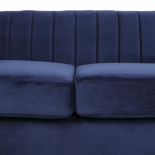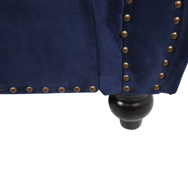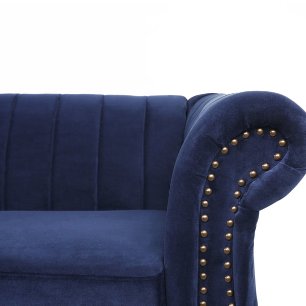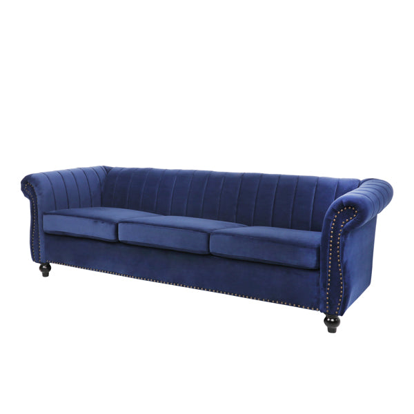 This one sophisticated look sofa craft with velvet upholstery, traditional rolled arms with nailhead trim. solid and manufactured wood frame with steady solid wooden legs wadding provide comfortable support for your body when seated. Needing light assembly, you will be lounging on this sofa in no time